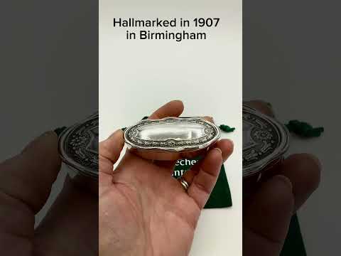 The box is made of Sterling Silver and has a beautiful design to the top. The lid lifts to show a lovely gold coloured interior. The hinge works well.