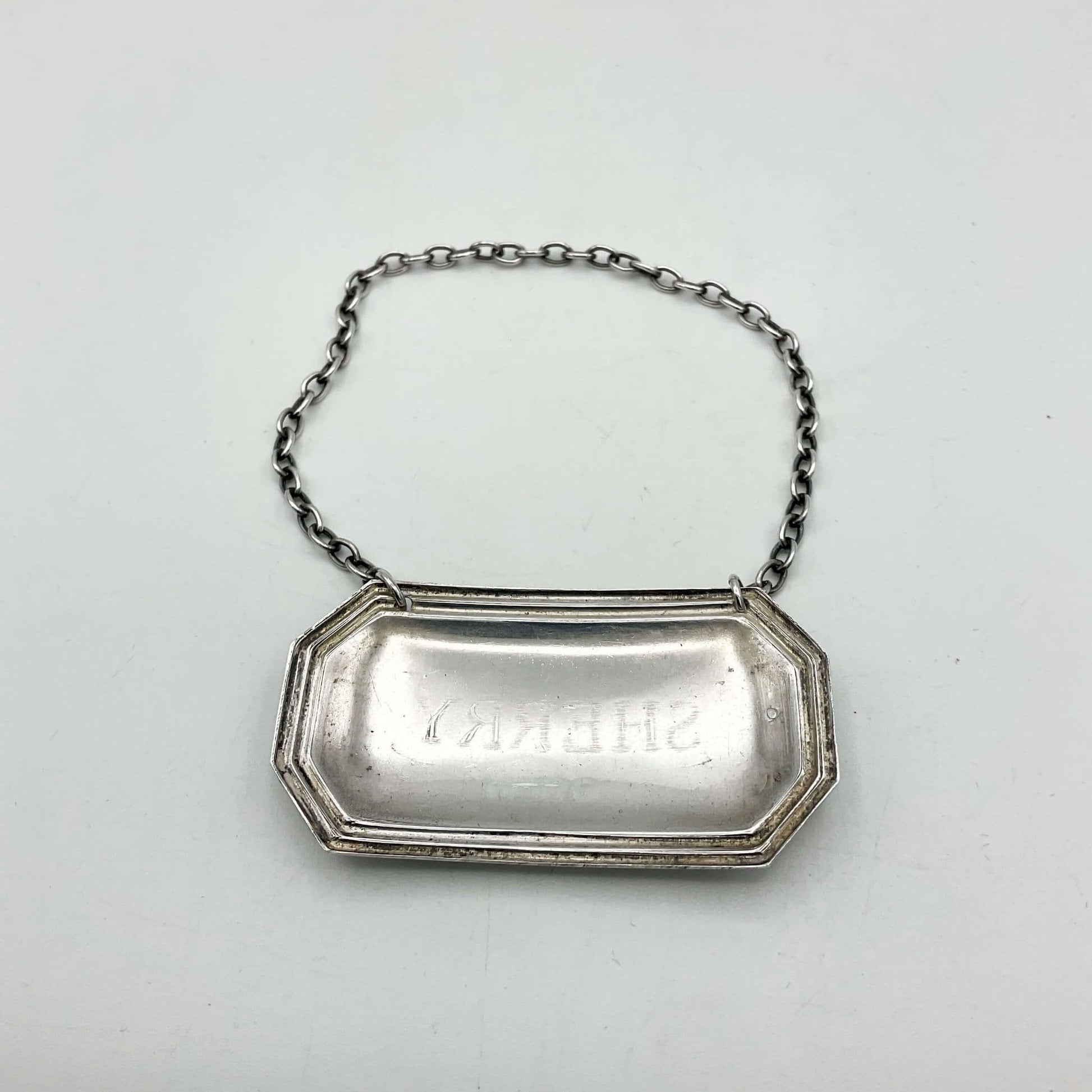It’s in good condition with some light scratches and tarnish in the label design and chain which adds to the vintage look.