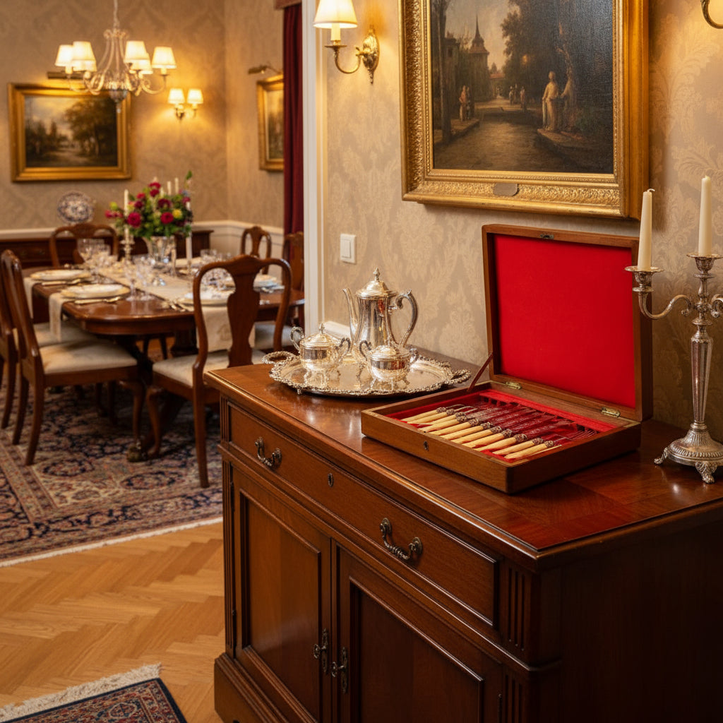 Antique Boxed Silver Plated Dessert Cutlery Set